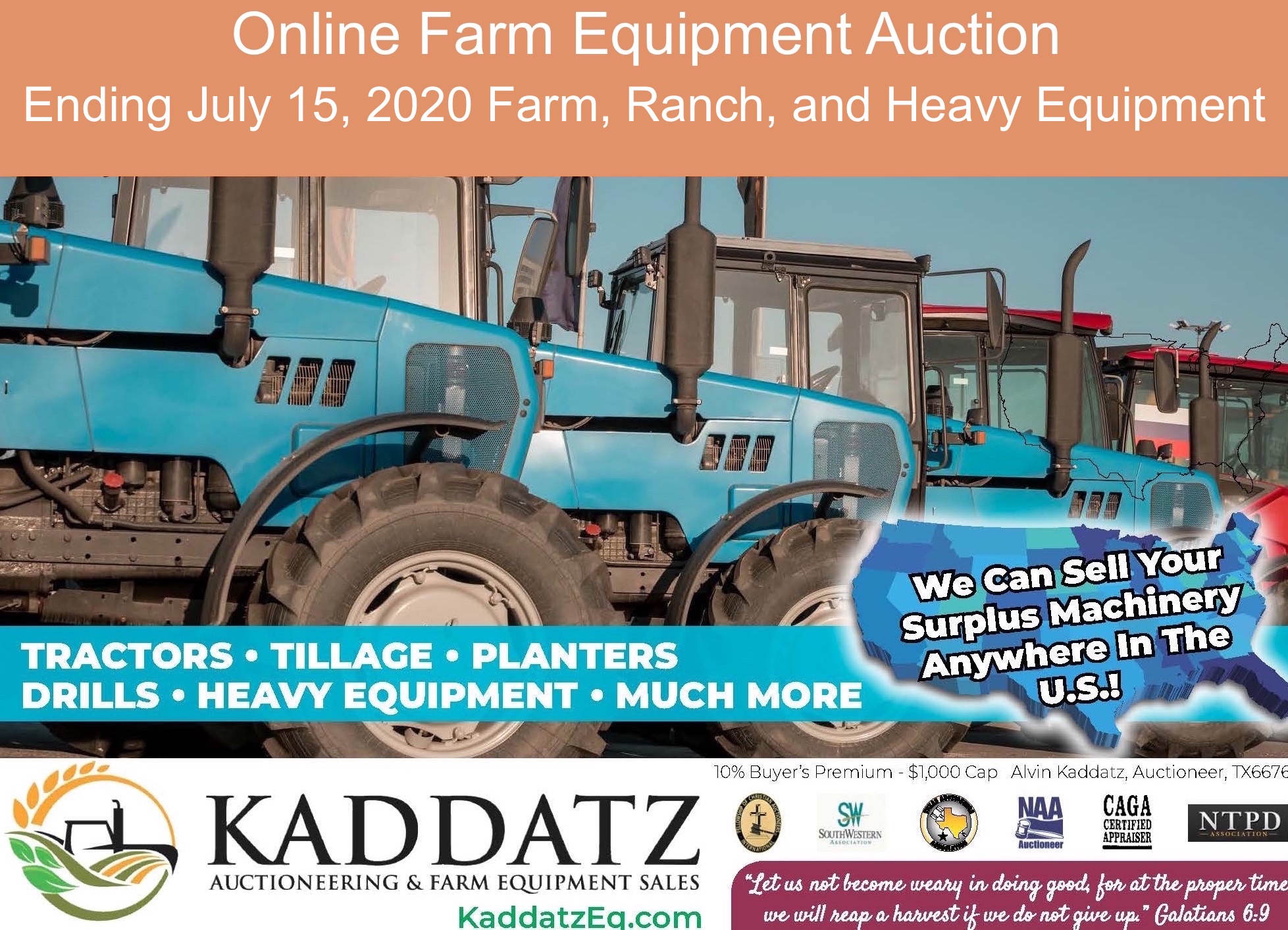 Your source for all your farm and ranch needs. New and Used Farm Equipment, Salvage Tractors and Implements, New & Used Tractor Parts & Farm Equipment Parts, Farm Equipment Auctions, and Farm Equipment Appraisals and Machinery Appraisals.
